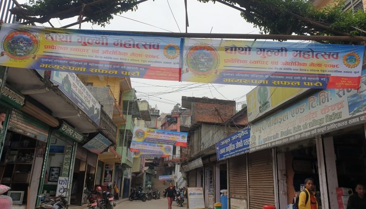 २३ चैत, गुल्मी । गुल्मी महोत्सवको मिति नजिकनि थालेसँगै महोत्सव लक्षित गतिबिधी वढ्न थालेका छन् । ‘गुल्मी जिल्लाको सम्पन्नता र समृद्धिको निकास शिक्षा, स्वास्थ्य, कृषि र पर्यटनमा आधारित व्यापारको विकास’ भन्ने नाराका साथ यहि चैत २५ गतेदेखि बैशाख ४ गतेसम्म चौथो गुल्मी महोत्सव, प्रादेशिक व्यापार एवं औद्योगिक मेलाको मेलाको तयारीलाई तिब्र पारिएको छ । महोत्सवमा आउने पाहुना तथा दर्शकहरुलाई मध्य नजर राखेर तम्घास बजार प्रबेश गर्ने तीन स्थानमा स्वागत गेट निर्माण गरिएको छ । स्वागत गेट तम्घासको उपल्लो तम्घास, पुतलीबजार र उदिनढुङ्गामा निर्माण गरिएको गुल्मी उद्योग बाणिज्य संघका अध्यक्ष इश्वरीप्रसाद पौडेलले बताए । महोत्सवलाई सफल बनाउन तम्घास बजार वासीले आफनो घर घरमा स्वागत व्यानर राखेर सिंगारिएको छ । महोत्सव हुने चिदीचौर मैदानमा मेला निर्माण कार्य अन्तिम चरणमा पुगेको छ ।
