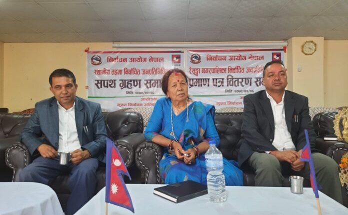 गुल्मी, ७ जेठ गुल्मीको रेसुङ्गा नगरपालिकामा नवनिर्वाचित नगरप्रमुख खिलध्वज पन्थीले नगरपालिका अन्तर्गतका कर्मचारीहरूलाई नगरवासीको मर्म र भावना विपरीत काम नगर्न निर्देशन दिएका छन् । नेपाली काँग्रेस गुल्मीका सभापति समेत रहेका पन्थीले शुक्रबार नगरप्रमुखको पदभार ग्रहण गरेपछि कर्मचारीहरूसँगको परिचयात्मक कार्यक्रममा कर्मचारीहरूलाई रेसुङ्गावासीको मर्म र भावना विपरीत काम नगर्न निर्देशन दिएका हुन् । जनप्रतिनिधि र कर्मचारीको सहकार्यबाट मात्र आम जनताको हितमा काम गर्न सकिने नवनिर्वाचित नगरप्रमुख पन्थीले बताए । “हामी राजनीतिक नेतृत्वले सुन्दर नगरपालिका बनाउन सुन्दर सपना देखेका छौं ।“ नवनिर्वाचित नगरप्रमुख पन्थीले भने, “ सुन्दर नगर बनाउने सपनामा कर्मचारीले सहयोग गर्नु आवश्यक छ ।“ पन्थीले कर्मचारीहरूलाई नगरवासीको पक्षमा र समुन्नत नगरको पक्षमा काम गर्न पनि आग्रह गरे ।