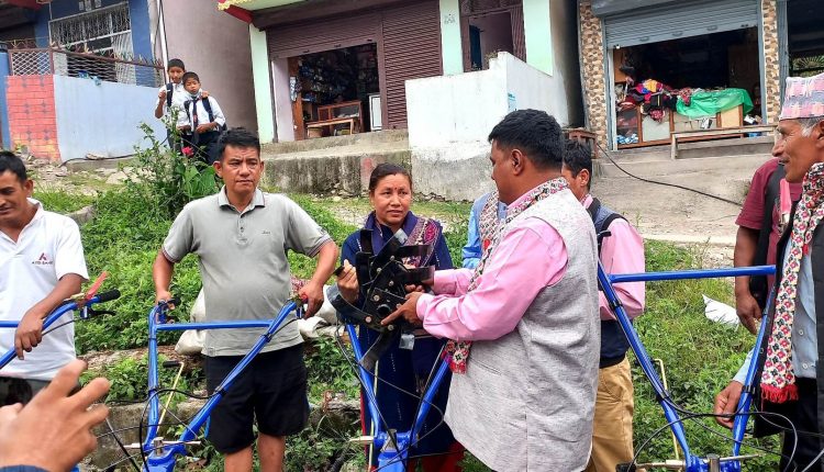गुल्मी जिल्लाको चन्द्रकोट गाउँपालिकाले स्मार्ट कृषि कार्यक्रम अन्र्तगत कृषकहरुलाई कृषि औजार सामाग्री वितरण गरेको छ । शुक्रबार एक कार्यक्रमको आयोजना गरी उक्त सामाग्रीहरु वितरण गरिएको हो । जसमध्ये स्मार्ट कृषि कार्यक्रममा समावेश भएका कृषिकका लागी हाते ट्याक्टर ७ वटा, च्याप कटर १७ वटा, मल्चिङ्ग प्लाष्टिक २५ रोल, सिचांई पाइप ५ हजार मिटर, बाख्राको दाना खुवाउने ढुण १ सय पिस, डिजिटल तराजु ५० केजीको ७ वटा, १ सय केजीको ६ वटा लगायतका कृषि सामाग्री वितरण गरिएको छ । गाउँपालिका भित्र स्मार्ट कृषि कार्यक्रममा समावेश भएका कृषकका लागी पहिलो बर्ष पनि कृषि औजार वितरण गरिएको थियो ।