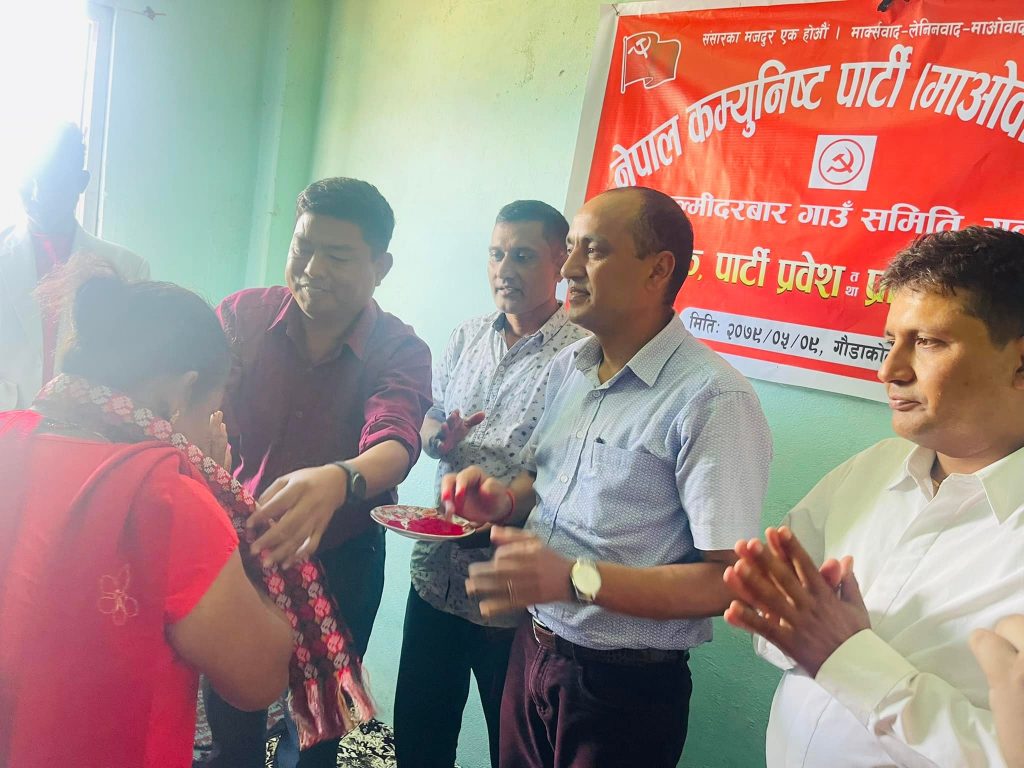 आज नेकपा माओवादी केन्द्र गुल्मीदरबार गाउँकमिटीको गौडाकोटमा आयोजित प्रथम बैठक तथा भेलाको अवसरमा एमालेबाट यमबहादुर पाण्डे, बालकृष्ण अर्यालय , जयबहादुर सुर्यबशी, पविता नेपाली , मनकला बिक र बीरबहादुर सुनार सहितका कार्यकर्ताहरु माओवादी केन्द्रमा फर्किएका हुन् ।