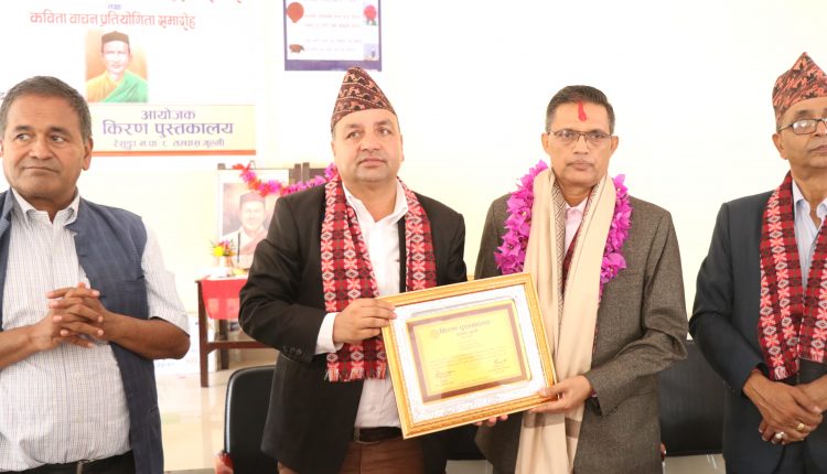 किरण पुस्तकाल व्यवस्थापन समितिका उपाध्यक्ष दीन पन्थीको रहेको कार्यक्रमको रेसुङ्गा नगरपालिकाका नगरप्रमुख खिलध्वज पन्थी, रेसुङ्गा नगरपालिकाका सुचना अधिकारी शंकर प्रसाद गौतम, किरण पुस्तकालय व्यवस्थापन समितिका सचिब चनक बहादुर कुँवर, नेपाल सरकारका पूर्व सचिब युवराज भुसाल, रेसुङ्गा बहुमुखीका पूर्वक्याम्पस प्रमुखहरु ,नेपाल पत्रकार महासंघका उपाध्यक्ष रेशम कुवँर, पत्रकार, कवि लगायतको उपस्थित रहेको थियो ।