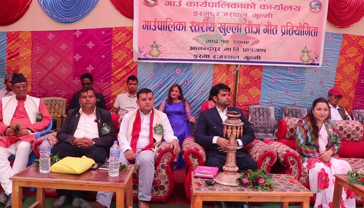 गुल्मीमा संस्कृतिको संरक्षणसँगै तीज गीत र नृत्यमार्फत सामाजिक सन्देश प्रवाह गरिएको छ । जिल्लाको इस्मा गाउँपालिकामा गाउँपालिका स्तरीय तीज गीत प्रतियोगितामा आयोजना गरि संस्कृतिको संरक्षणसँगै तीज गीत र नृत्यमार्फत सामाजिक सन्देश प्रवाह गरिएको हो ।