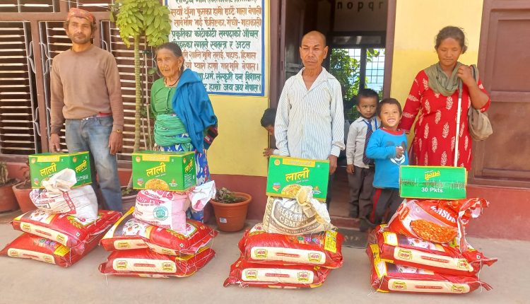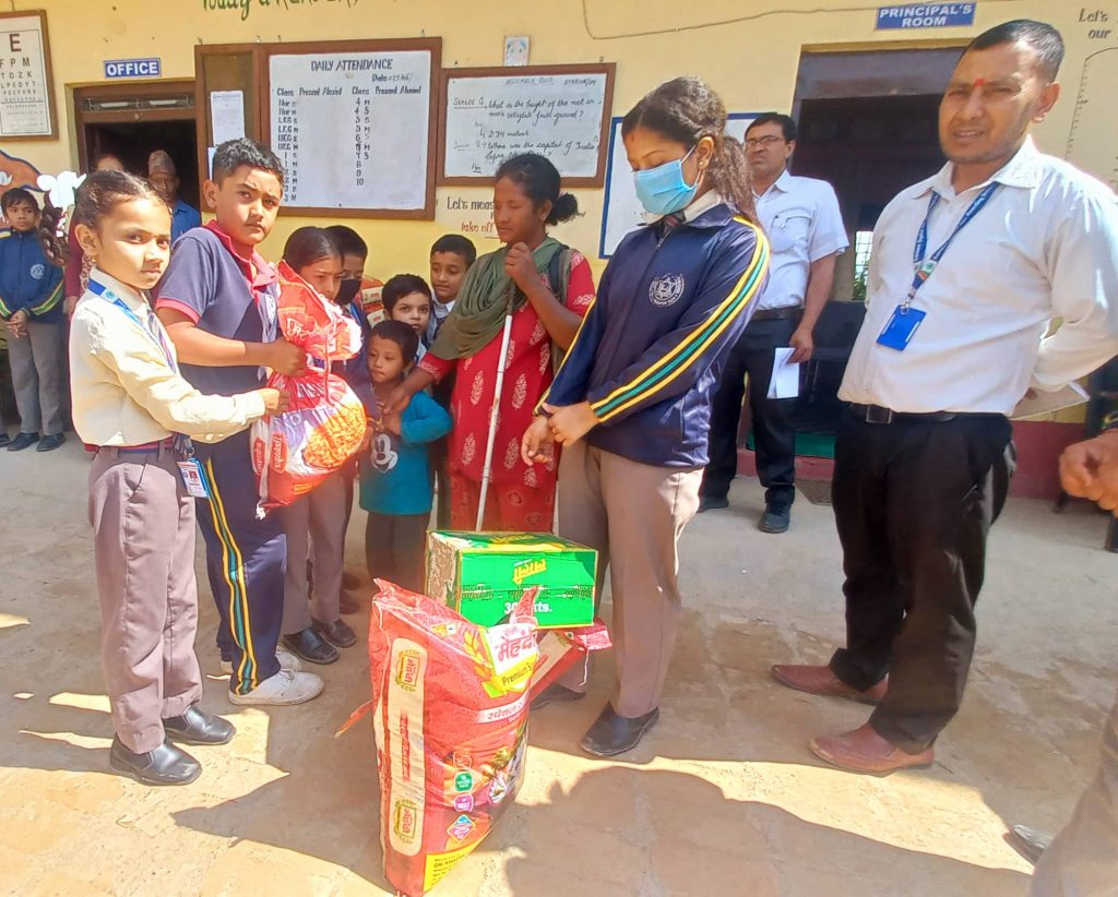 विपन्न परिवारहरुलाई चामल २ बोरा प्रति परिवार, दाल ५ किलोग्राम, चिनी २ किलोग्राम, नुन ४ किलोग्राम, चियापत्ति १ प्याकेट, चाउचाउ १ प्याकेट, खानेतेल २ लिटर सहयोग गरिएको प्रिन्सीपल खत्रीले बताए ।