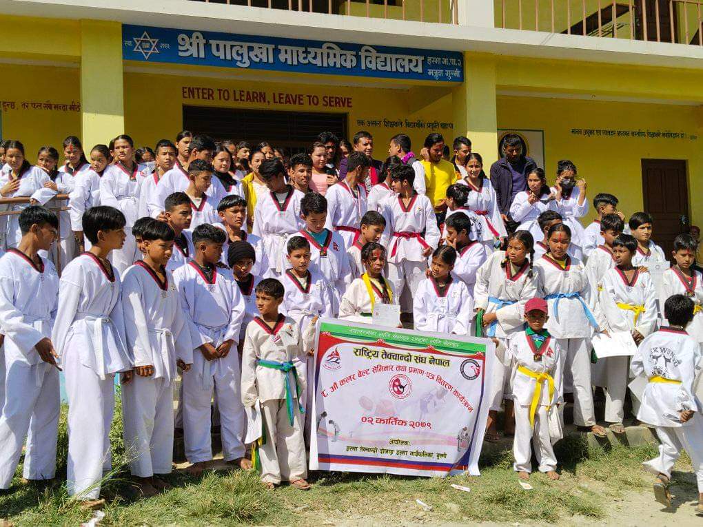 गुल्मी जिल्लाको इश्मा गाउँपालिकामा आठौँ कलर बेल्ट तथा प्रमाण पत्र वितरण कार्यक्रम सम्पन्न भएको छ । इश्मा तेक्वान्दो दोजाङ्ग गुल्मीको आयोजनामा वडा नं. २ को पालुखा मा.वि.मा सो कार्यक्रम सम्पन्न भएको हो ।