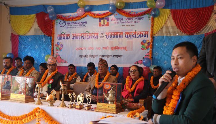 शुुभलक्ष्मी क्लिनिक तम्घासले तानसेन पाल्पाको समृद्धि रिसोर्टमा बार्षिक अन्तरक्रिया तथा सम्मान कार्यक्रम शनिबार सम्पन्न गरेको छ । शुभलक्ष्मी क्लिनिकले वर्षभर गरेका कामको प्रगति तथा आगमी दिनमा गरिने भावी योजनाको बारेमा बार्षिक अन्तरक्रिया कार्यक्रम गरेको हो ।
