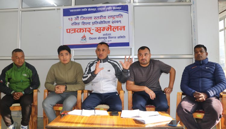 गुल्मीमा बिहीबार देखि संचालन हुने १३ औँ जिल्लास्तरीय राष्ट्रपति रनिङ शिल्डको तयारी पुरा भएको छ । आयोजक जिल्ला खेलकुद विकास समितिले बुधबार बिहान कार्यालयमै पत्रकार सम्मेलनको आयोजना गरी खेलको सम्पूर्ण तयारी पुरा भएको जानकारी दिएको हो । खेलमा कुल छ विधामा एक हजार तीन सय भन्दा बढी खेलाडी सहभागि हुनेछन् । जसमा प्रत्येक पालिकाबाट बढीमा ११६ जना खेलाडी सहभागि हुने जिल्ला खेलकुद विकास समितिका अध्यक्ष गिरी प्रसाद महाकिमले जानकारी दिए । गत बर्षसम्म पाँच विधामा मात्रै खेल हुने गरेकोमा यस बर्ष मार्सल आर्ट समेत थप गरिएको छ । आज साँझसम्म सबै पालिकाबाट खेलाडीहरु सदरमुकाम आउनेछन् ।