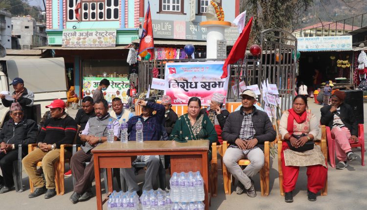 राष्ट्रिय जनमोर्चाले संघियताको खारेजी को माग गर्दै जिल्ला सदरमुकाम तम्घासमा प्रर्दशन गरेको छ । जिल्लाका बिभिन्न स्थानबाट आएका नेता कार्यकर्ताले सदरमुकाम तम्घासमा संघिएताको खारेजीको माग सहितका नाराबाजी सहित प्रर्दशन गरेका हुन् । प्रर्दशन पछि कोर्ण सभालाई सम्बोध गर्दै प्रदेश र जिल्ला स्तरीय नेता कार्यकर्ताले संघिएताले देशलाई आर्थिक बोझ थुपारेको बताएका थिए ।