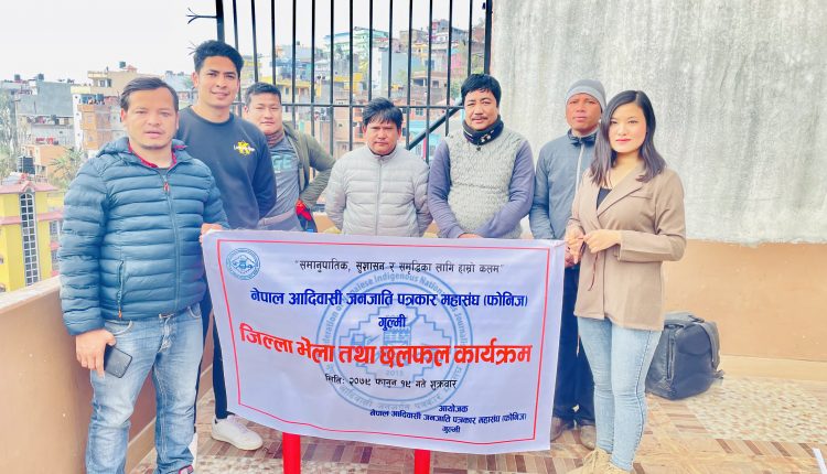 नेपाल आदिवासी जनजाति पत्रकार महासंघ (फोनिज) गुल्मीको जिल्ला भेला तथा छलफल कार्यक्रम शुक्रबार सम्पन्न भएको छ । जिल्लाको सदरमुकाम तम्घासमा सम्पन्न भेलाले फोनिज नितीका लागी सुझाव संकलन गरेको छ ।
