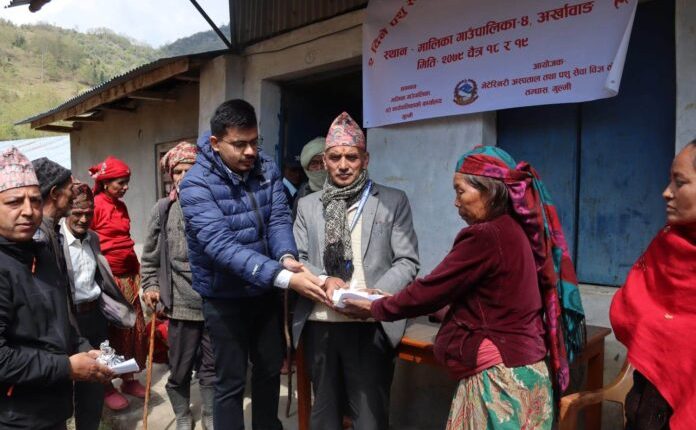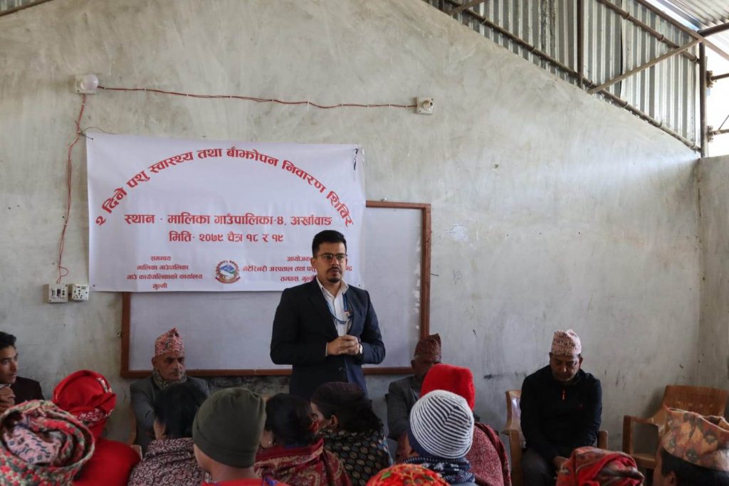 कार्यालयले मालिका गाउँपालिकाको केन्द्र अर्खाबाङमा आयोजना गरेको शिबिबाट १६५ घरका पशुहरुको स्वास्थ्य जाँच ,परामर्श तथा निशुल्क औषधि वितरण गरिएको कार्यालयका प्रमुख भरत काफलेले जानकारी दिनुभयो ।