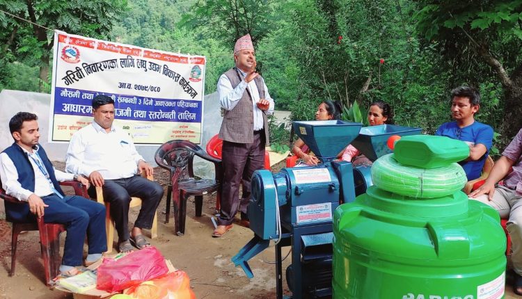 नेपाल सरकार उद्योग बाणीज्य तथा आपुर्ति मन्त्रालयको सहयोग तथा चन्द्रकोट गाउँपालिका गुल्मी मार्फत संचालित गरिबी निवारणका लागि लघु उद्यम विकास कार्यक्रम मेड्पा अन्तर्गत सम्पन्न भएको हो ।