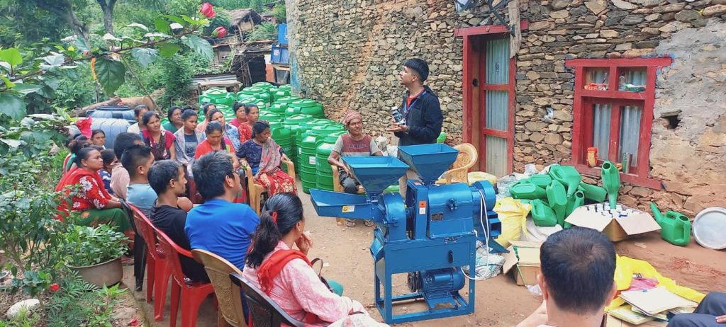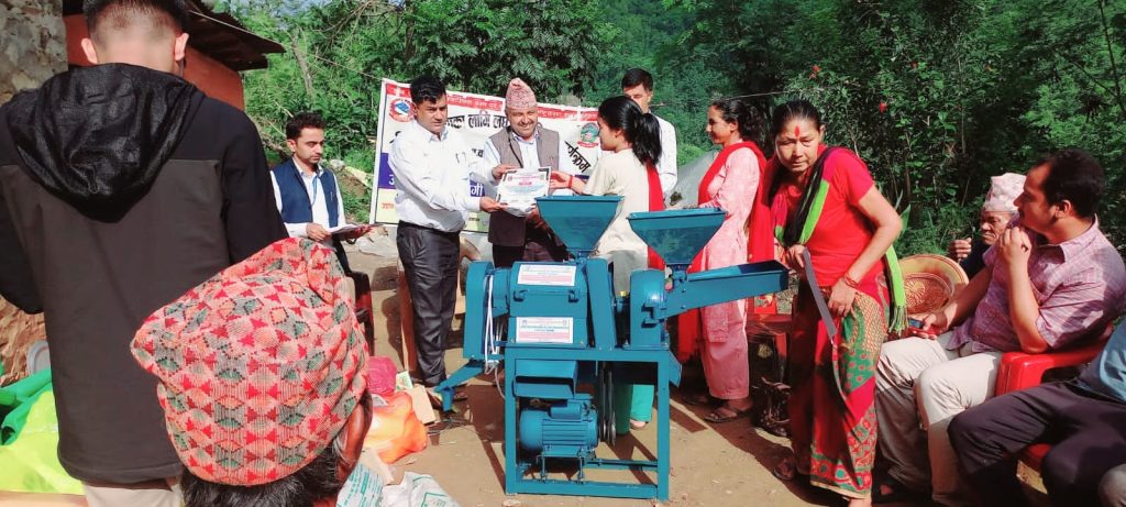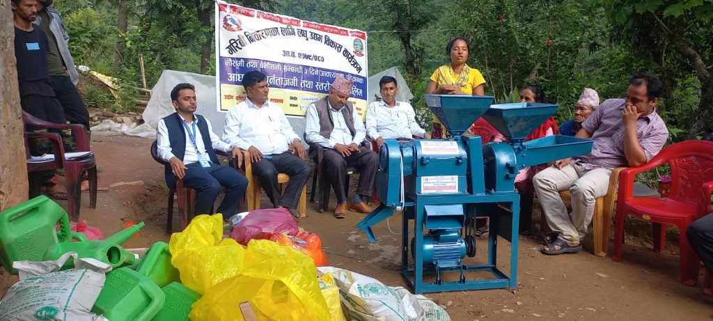 जस अन्तर्गत समुहमा आवद्ध २० जनामा प्रत्येक सदस्यलाई पोली ट्याङ्क, विभिन्न किटनाशक औषधि, विउपल, गार्डेन पाईप, हजारी, सेफ्टि ज्याकेट लगायतका कृषि जन्य सामाग्री प्रदान गरिएको थियो भने समुहलाई १ वटा कुटानी पिसानी मिल समेत उपलब्ध गराईएको थियो ।