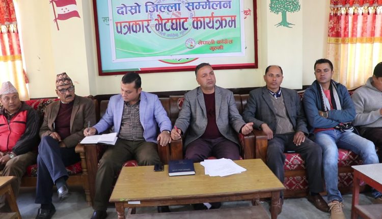 ४ मंसिर, गुल्मी । नेपाली काँग्रेस गुल्मीले आगामी मंसिर ९ र १० गते दोस्रो जिल्ला सम्मेलन गर्ने भएको छ । सोमबार पत्रकार भेटघाट कार्यक्रमको आयोजना गरेर काँग्रेस पार्टीले हालसम्म गरेको कामको समिक्षा र आगामी कार्ययोजना बारे जानकारी दिने उदेश्य सहित जिल्लामा दोस्रो सम्मेलन गर्न लागेको नेपाली काँग्रेस गुल्मीले जनाएको छ ।
