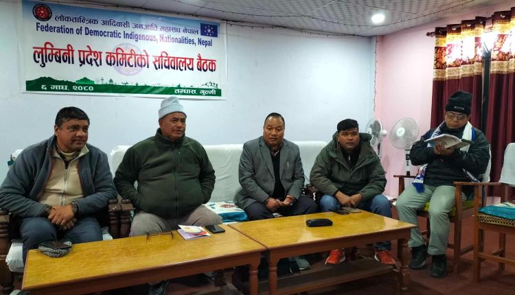 ६ माघ, गुल्मी । लोकतान्त्रिक आदिवासी जनजाती महासंघको लुम्बिनी प्रदेश कमिटीको फागुन २६ र २७ गते तम्घासमा प्रदेश अधिवेशन गर्ने भएका छन् । शनिवार लोकतान्त्रिक आदिवासी जनजाती महासंघको लुम्बिनी प्रदेश कमिटीको तम्घासमा बसेको सचिवालय बैठकल प्रदेश अधिवेशन गर्ने निर्णय गरेको हो ।