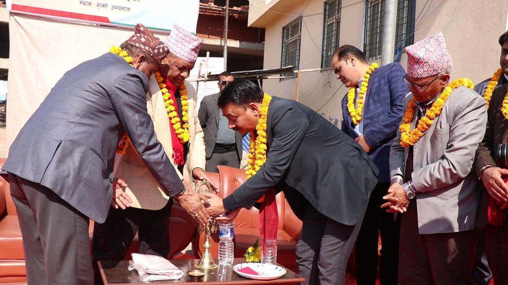 भौतिक संरचनाको अभावले समस्या झेल्दै आएको गुल्मी अस्पतालको अत्याधुनिक भवन बन्न थालको छ । अस्पतालले पुरानो भवनमा साघुँरो कोठाहरुबाट पनि बिशेषज्ञ सेवा भने दिँदै आएको छ ।