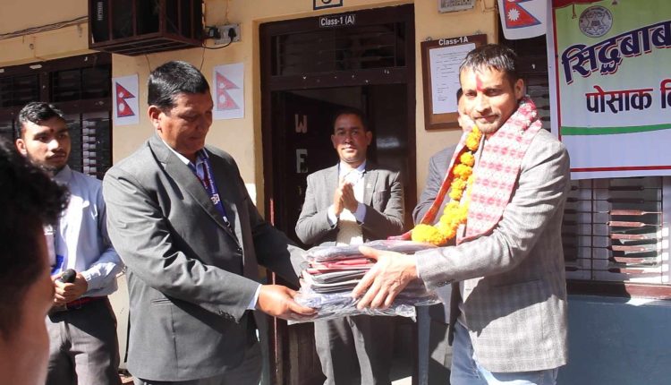 व्यवसायीहरुबाट सहयोग संकलन गरेर सिद्धबाबा माध्यमिक विद्यालयमा रहेको क्लोथ बैंकलाई सानो सहयोग प्रदान गरेको फेन्सी तथा कपडा व्यवसायी संघ गुल्मीका अध्यक्ष अर्जुन कार्कीले बताए । विद्यार्थीलाई पढाइमा सहजता ल्याउनु मुख्य उदेश्यले झोला प्रदान गरिएको कार्कीले बताए