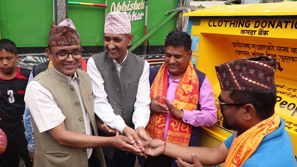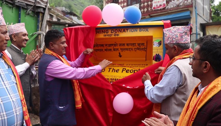गुल्मी । गुल्मी जिल्लाको चन्द्रकोट गाउँपालिकामा जिल्ला मै पहिलो पटक कपडा बैंङ्क स्थपना भएको छ । मंगरबार १७ औं गणतन्त्र दिवसको अवसर पारेर शान्तिपुरमा आयोजित एक औपचारिक कार्यक्रम गदै बसर्पाकमा कपडा बैंङ्कको शुभारम्भ गरिएको हो । चन्द्रकोट गाउँपालिकाका अध्यक्ष तथा कार्यक्रमका प्रमुख अतिथि युवराज केसीले शान्तिपुर बसपार्कमा राखिएको संकल्न बक्स खोली उद्घाटन गर्नुभएको थियो । उद्योग बागिाज्य संघ शान्तिपुरको सहयोगमा कपडा बैंङ्कको स्थापना गरिएको हो । यो गुल्मी जिल्ला मै पहिलो पटक स्थापना गरिएको छ । मानवीय कार्य अन्र्तगत क्लोथ बैंङ्कको स्थापना गरिएको उद्योग बाणिज्य संघ शान्तिपुरका अध्यक्ष तेजेन्द्र थापाले बताउनुभयो । उहाँले सबैले आफ्ना पुराना कपडाहरु कपडा बैंङ्कमा जम्मा गरी पर्यावरणमा पर्ने नकरात्क असरलाई समेत न्युनिकरण गर्न सकिने बताउनुभयो ।