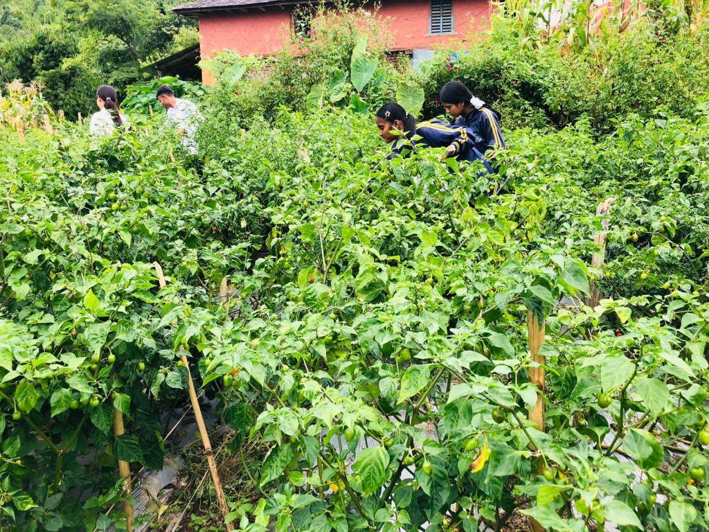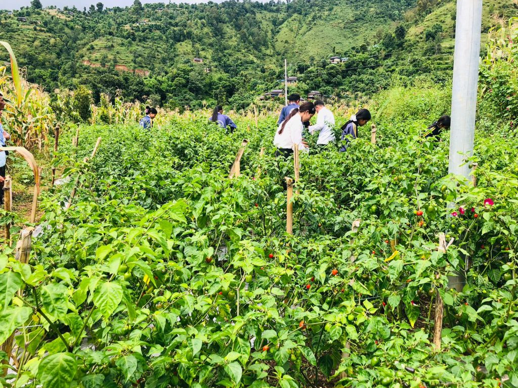 गुल्मी जिल्लाको चन्द्रकोट १ दिबु्रङ्ग सराङ्गमा रहेको शारदा माबिका बिद्यार्थीहरुले लगाएको अकबरे खुर्सानीका बिरुवाबाट उत्पादन सुरु भएको छ । शारदा माध्यमिक बिद्यालयले सञ्चालन गरेको सिकाईलाई सीपसंग जोड्ने कार्यक्रम गरी करिब ७ सय अकबरे खुर्सानीका बिरुवा रोपिएको थियो । बिद्यालयको आफ्नै पौने एक रोपनी जग्गामा मल्चिङ विधिबाट बिद्यार्थीहरुलाई सिकाउदै अकबरे खुर्सानीका बिरुवाहरु रोपिएको थियो । कक्षा ९ र १० का करिब ४१ जना बिद्यार्थीहरुलाई सहभागी बनाई पूर्व तयारीका साथ खुर्सानीका बेर्ना उत्पादन गरि रोपण गरिएको थियो । कार्यक्रममा सहभागी हुदाँ निकै खुसी लागेको बिद्यार्थीले प्रतिक्रिया दिए । उनिहरुले बिद्यालयमा पढाई संगै व्यवहारमा पनि सिक्न पाउँदा खुसी लागेको बताए । घरमा जस्तै बिद्यालयमा पनि सिक्न पाउनु खुशीको कुरा भएको उनिहरुको भनाई छ । हाल रोपेका उत्पादन दिन थाले पछि त झनै खुशी लागेको बिद्यार्थीहरुको भनाई छ ।